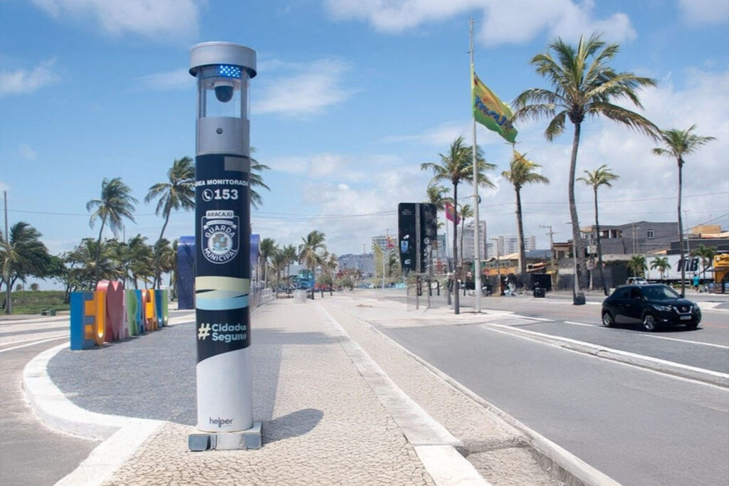 Totem de segurança com presença ostensiva em tamanho mais compacto, gravação de imagens 360° simultâneas.